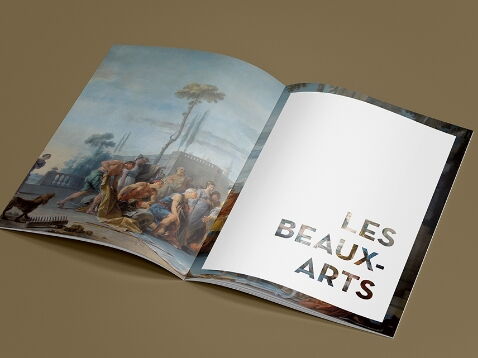 Pour cette création graphique nous avons choisi une ligne graphique, qui se base sur une recherche de l’élégance et sur la mise en avant des œuvres du musée. Pour ce projet la mise en page est construite autour de couleurs neutres, pour ne pas dénaturer les collections. Un vert d’eau anime discrètement la mise en page. Cette teinte est directement issue des œuvres présentées, elle reste dans la retenue et la sobriété. La composition des textes s'appuie sur deux typographies, un Sérif et une Linéale. La Linéale, principalement utilisé pour les titrages, représente la neutralité et la simplicité. Cette typographie apporte de la stabilité et de l'équilibre dans les écrits. La typographie à empattement, quant à elle, apporte l'élégance et fait référence aux éditions de qualités. Cette création graphique s’est construite autour des supports de communication existants du musée des Beaux-Arts. Ce beau livre étant leur propriété, il semblait pertinent de se servir des principes graphiques existants pour créer une cohérence et un lien graphique.